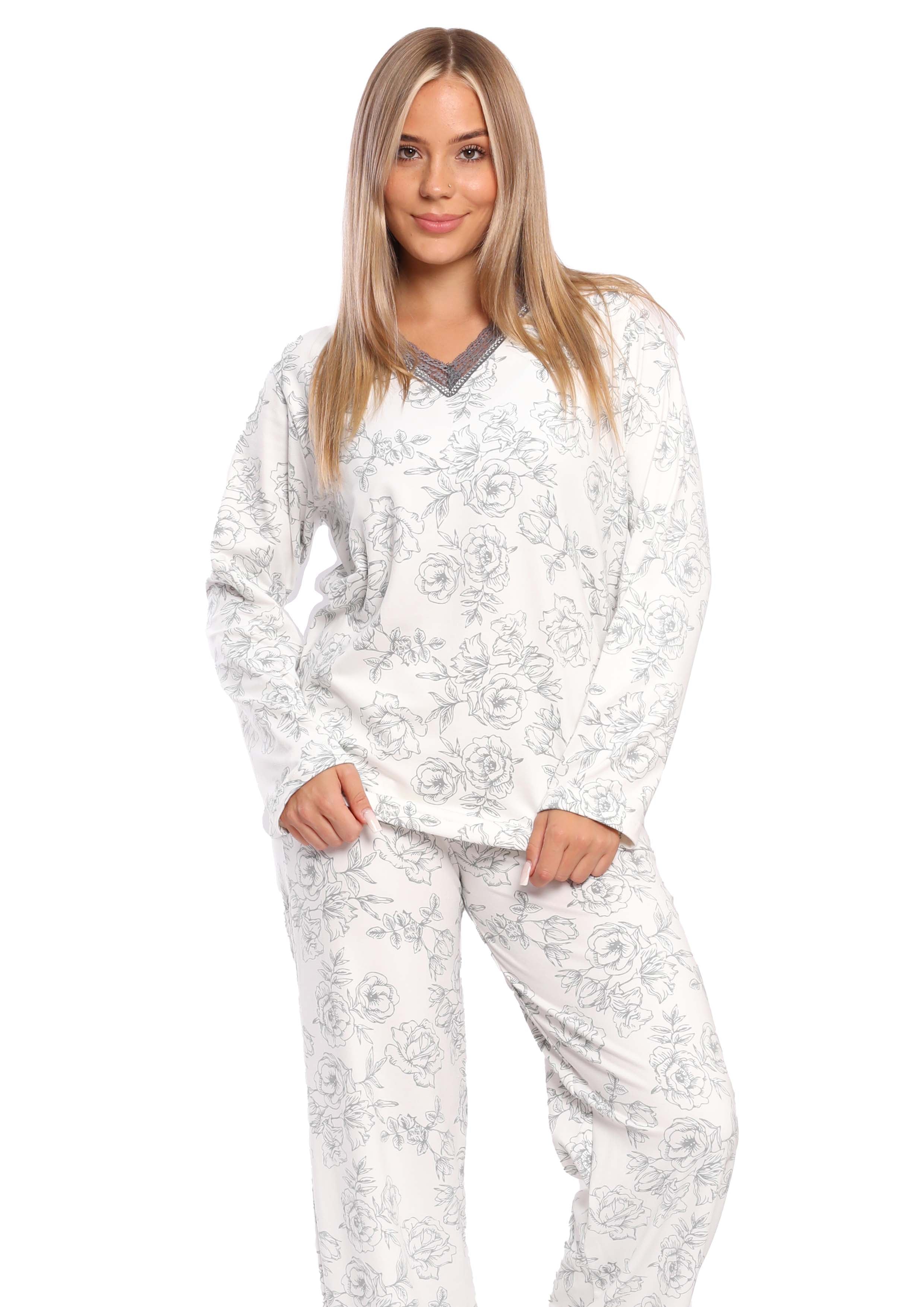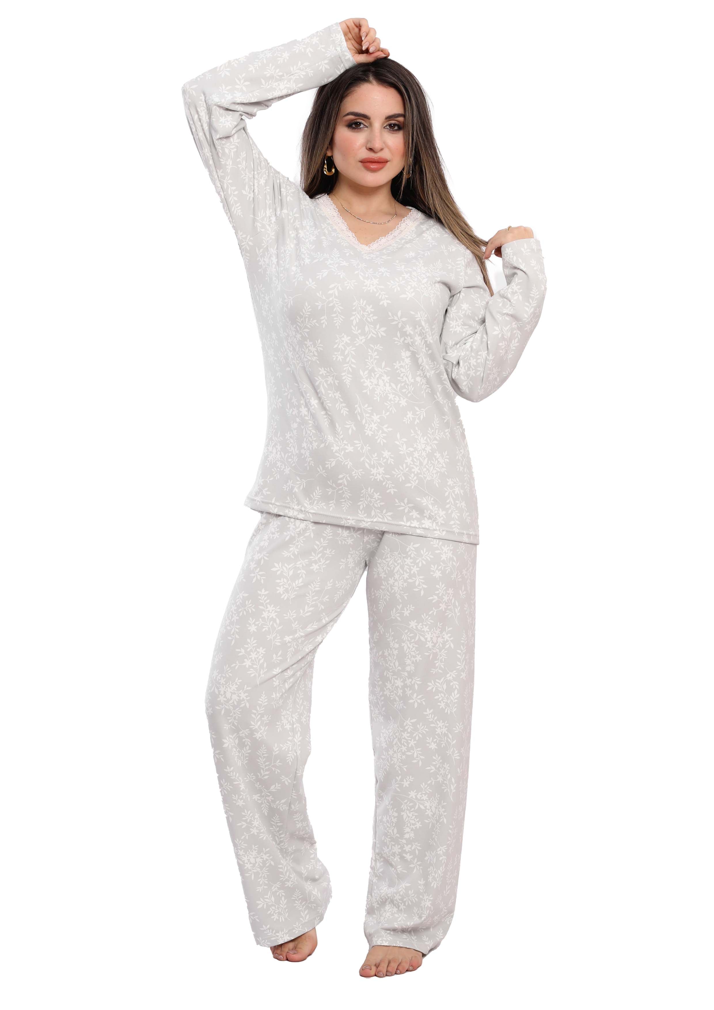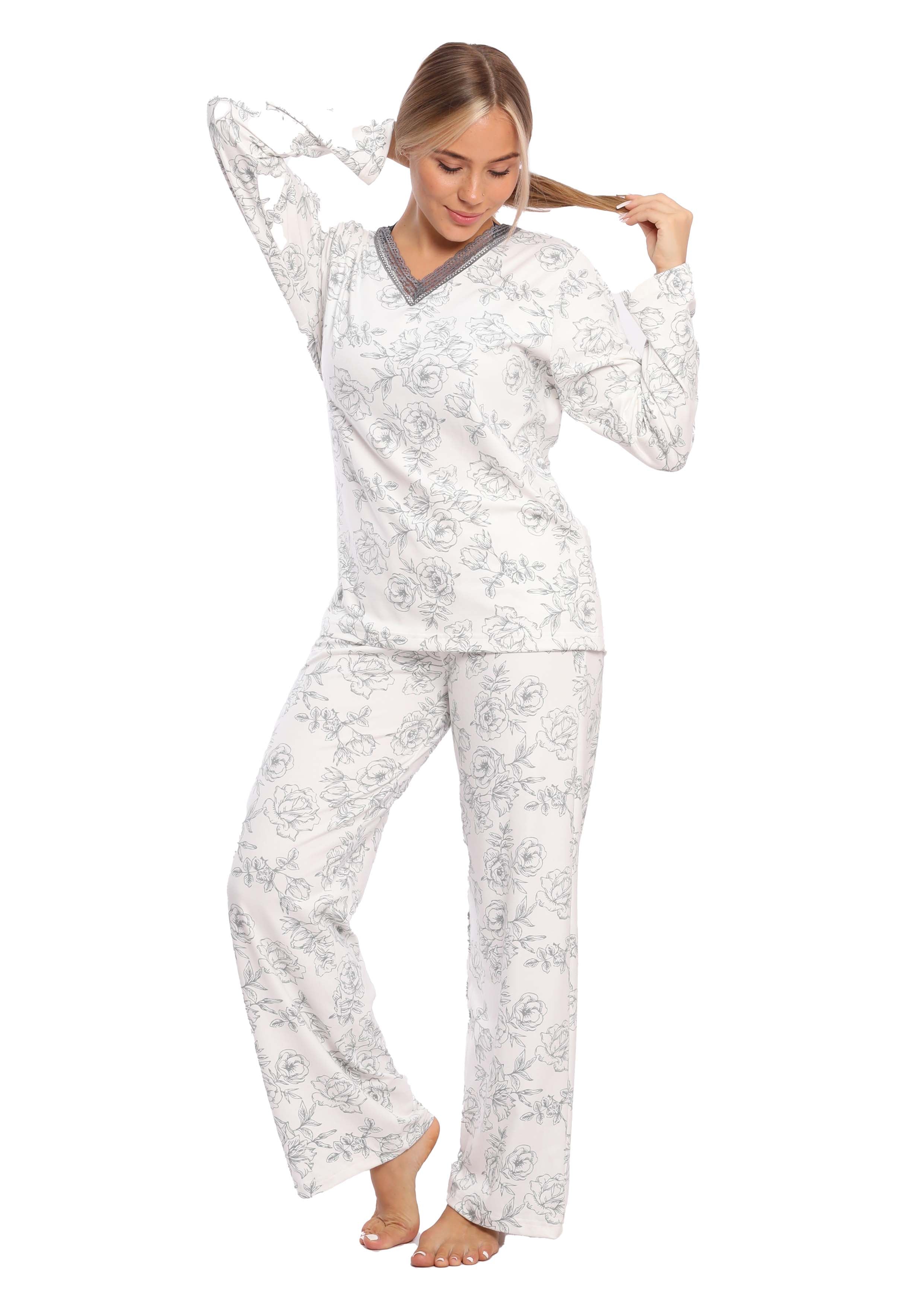 C314 WHITE ROSES LONG SLEEVES PAJAMA SET