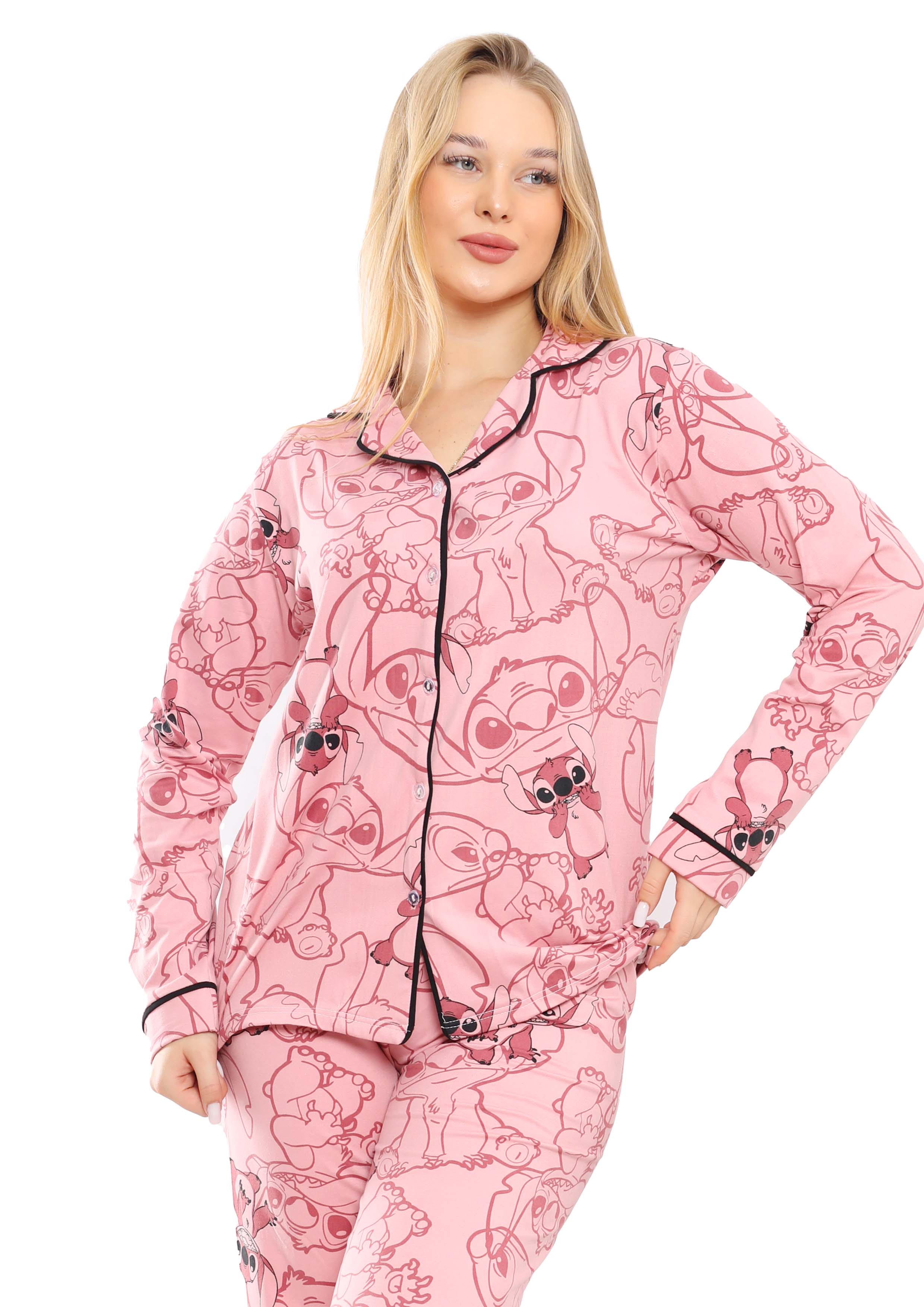 C358 Funny Stitch Buttoned pajama set